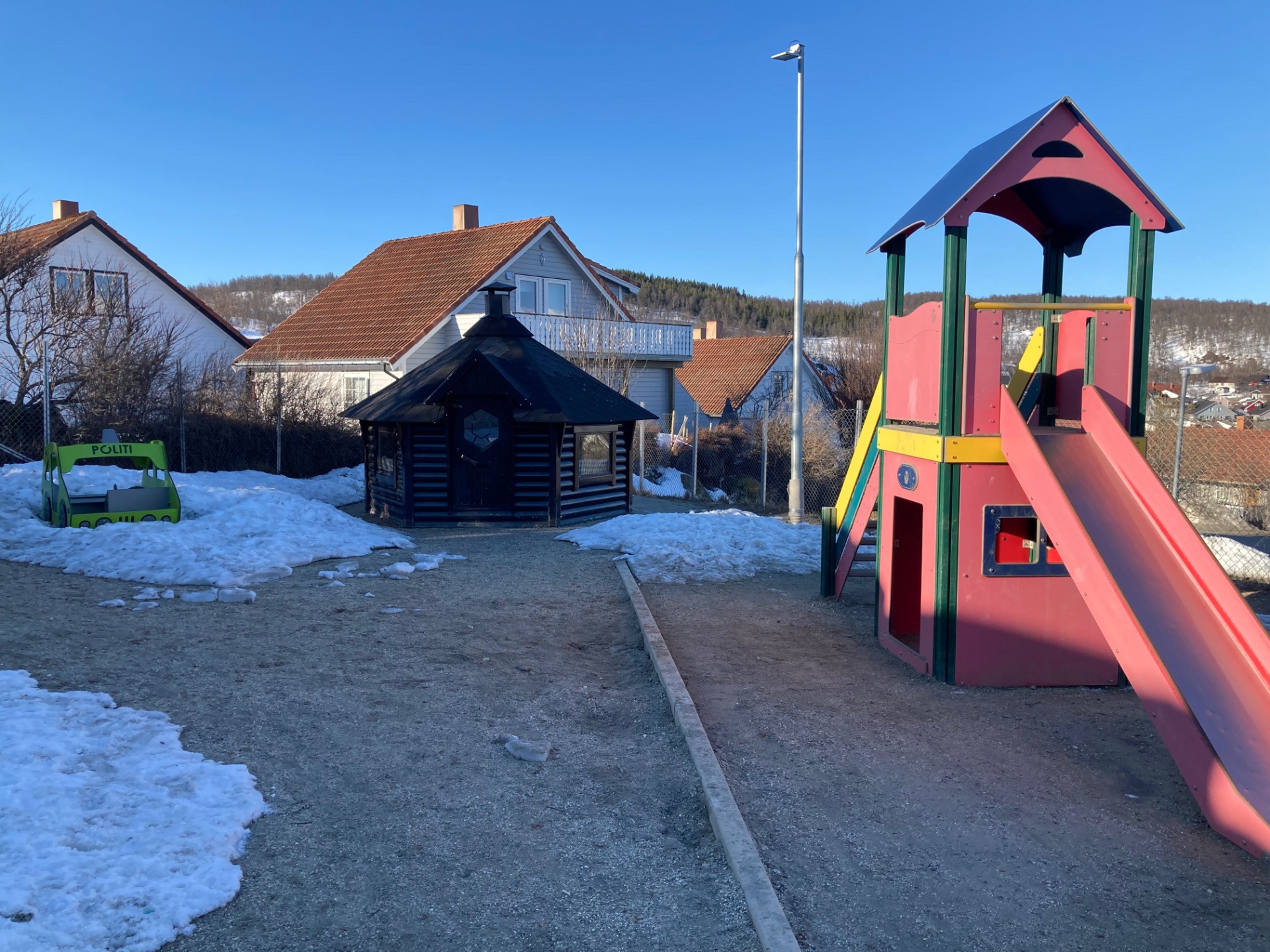 Minst en gang i uka har Naustet utestart. Frokosten spiser vi i den fine grillhytta vår. Spesielt på en dag som i dag, tirsdag 7.5., er det kjempedeilig å kunne leke ute i finværet med en gang :)
