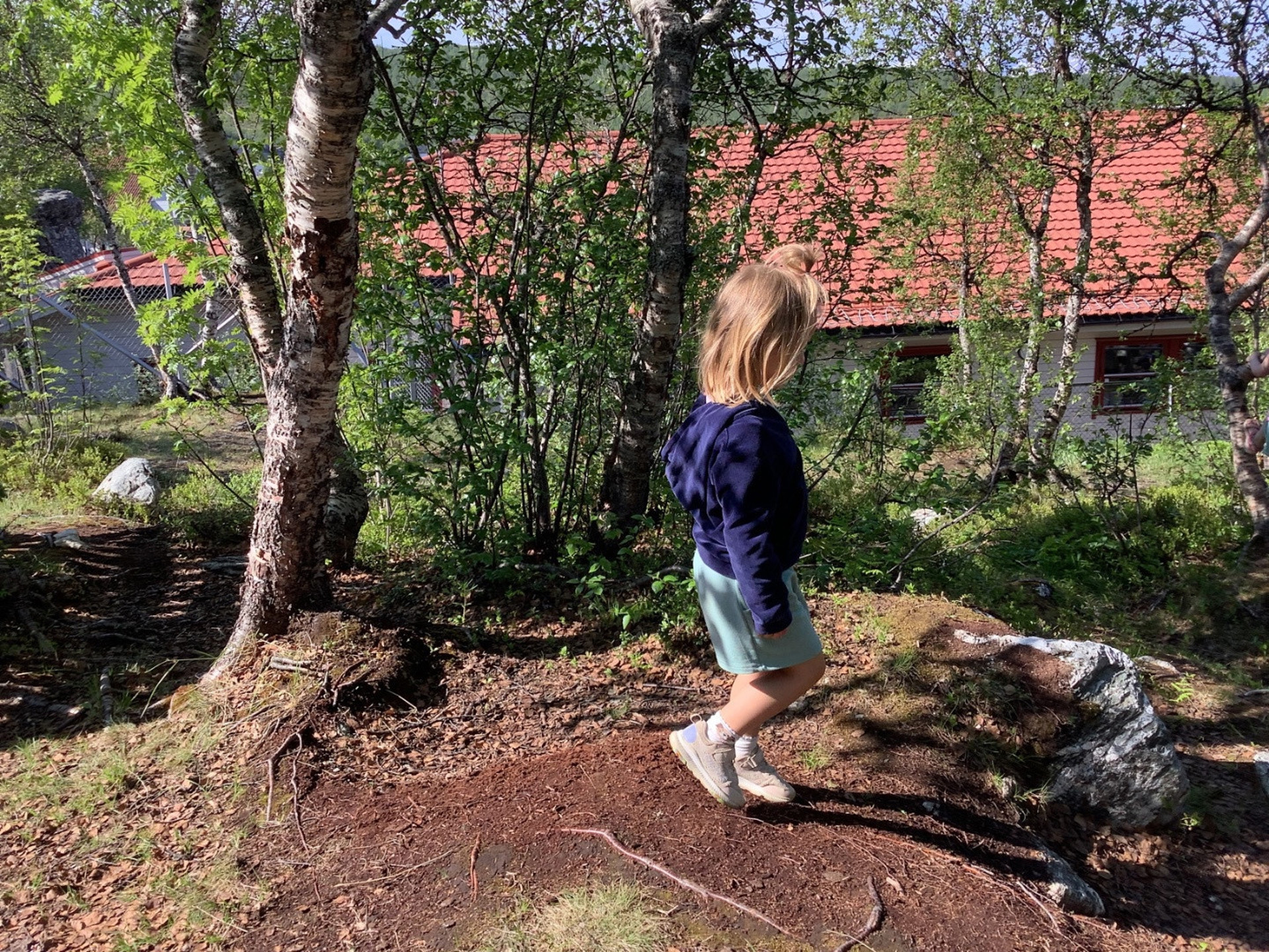 Vi er så heldige at vi har et inngjerdet, kjempefint skog-område ("Lilleskogen") rett bak barnehagen vår! Når sola står på som verst på fremsiden, eller når vi har lyst på litt natur og klatring i trær og på steinene, så går vi dit og koser oss.