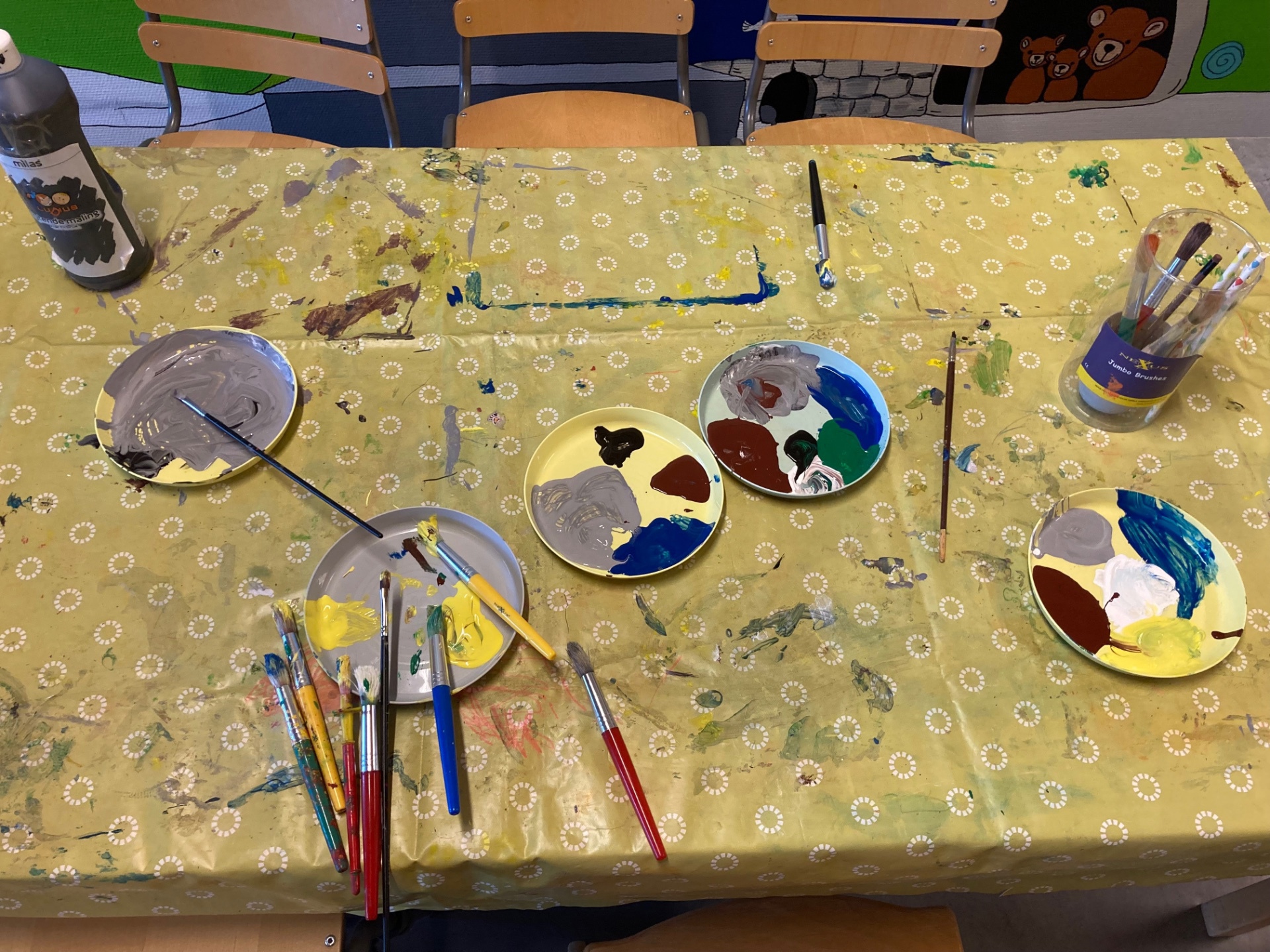Denne uka (uke 34) har det vært mye aktivitet med maling og pensler på alle avdelingene. Kunst og kultur er det viktig å jobbe med, og det ikke bare fordi at det er gøy med fine farger. Det handler også om få lov å skape noe selv, å finne måter å uttrykke seg på, å bearbeide inntrykk, å utvide motoriske ferdigheter, å oppleve meningsfulle, sosiale stunder og så videre og så videre